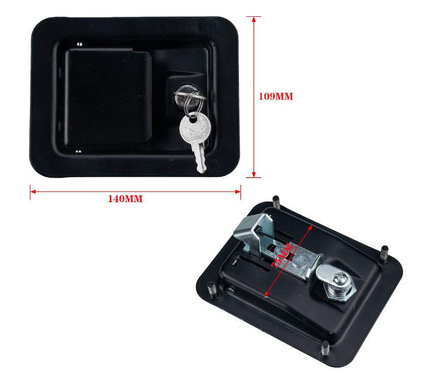 مواد: زنک الائے ہاؤسنگ، سلنڈر، کیم اور نٹ فنش: بلیک پاؤڈر لیپت یا کروم چڑھایا، زنک چڑھایا حصوں کی ساخت: 90 گردش